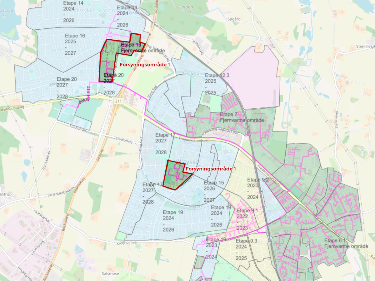 I 2012 blev det besluttet, at Stenløse, Stenløse Syd og Ølstykke Øst også skulle have fjernvarme. Derfor byggede vi et nyt fjernvarmenet og en ny varmeproduktion, som kunne levere varme til alle de nye kunder. Det blev til forsyningsområde 2.