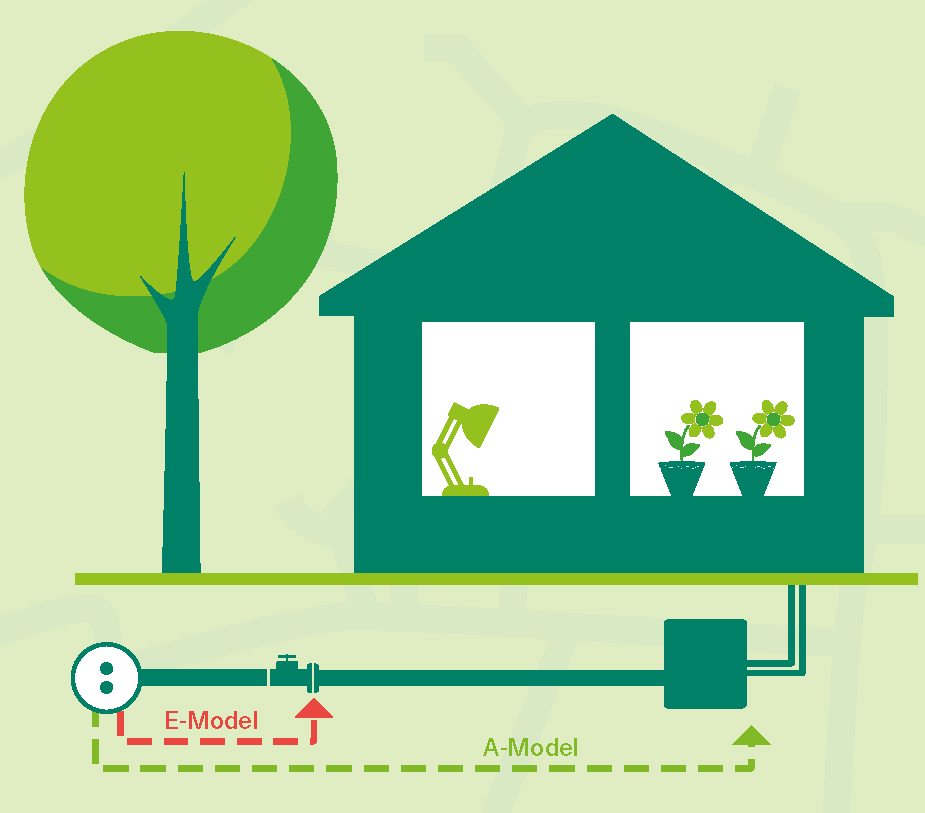 A-Modellen omfatter fjernvarmeforsyningen frem til leveringsgrænsen (se leveringsbestemmelserne), altså skellet mellem det som Egedal Fjernvarme (EFV) ejer, og det som du selv ejer.